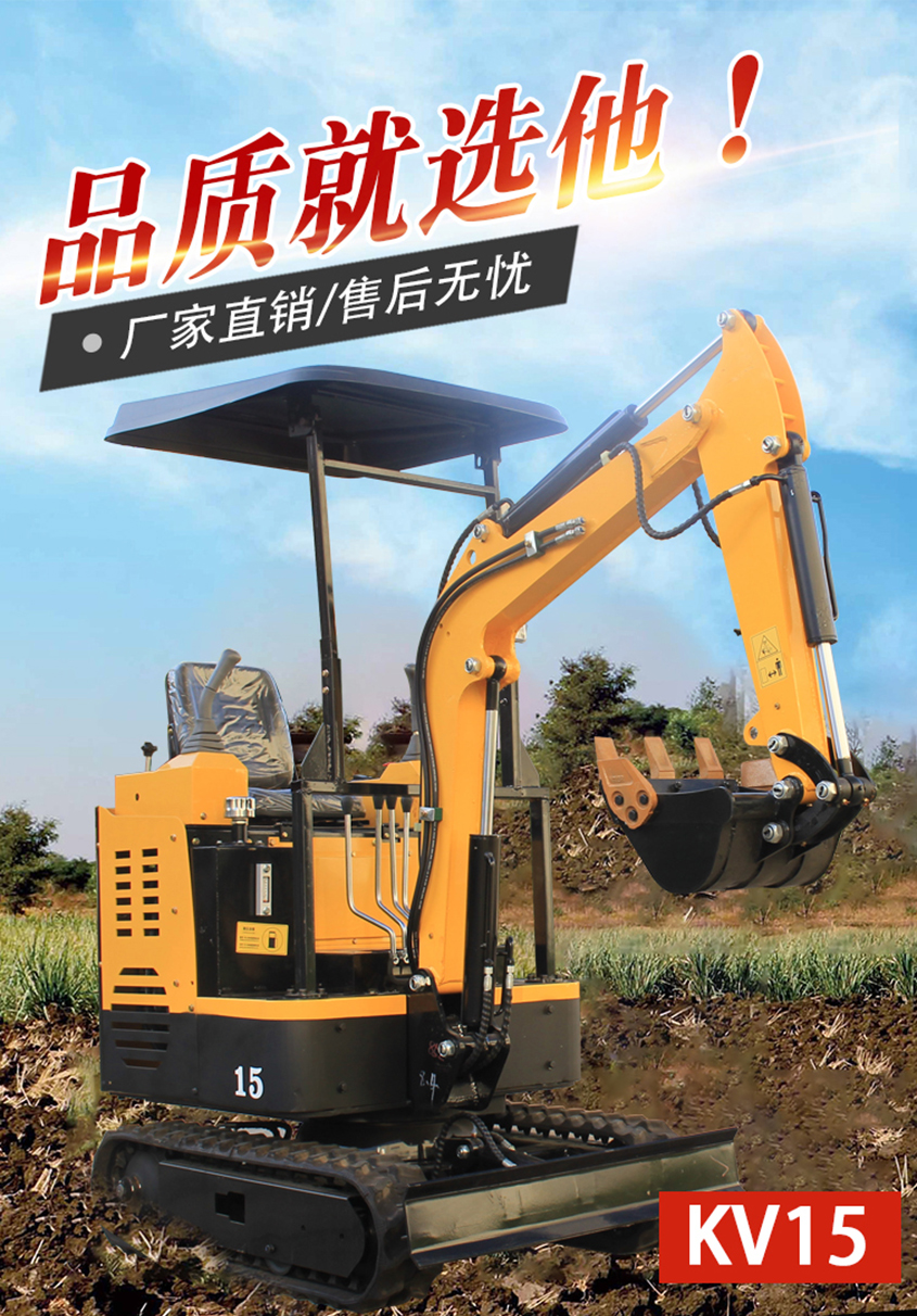 KV15小型挖掘機產品配置高,性能優越,油耗低,作業范圍廣。適合蔬菜大棚的土質疏松,市政部門的園林綠化,果園苗圃栽樹挖坑,混凝土路面破碎以及砂石料攪拌等空間狹小的施工作業。